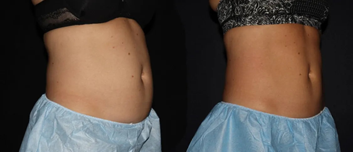 Application of the fat-reduction treatment to target stubborn fat in the tummy area.